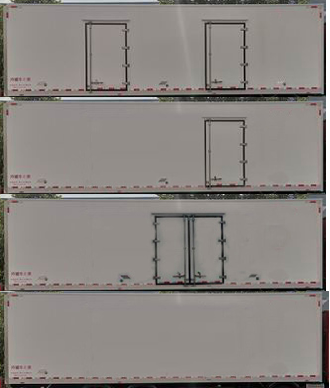 | 備注 | 隨底盤(pán)選裝駕駛室, 選裝制冷量相同或增加的制冷機(jī)組,選裝廂體側(cè)面開(kāi)門(mén):側(cè)面對(duì)開(kāi)門(mén),側(cè)面單開(kāi)門(mén),無(wú)開(kāi)門(mén)結(jié)構(gòu),可選裝廂體左側(cè)開(kāi)門(mén)結(jié)構(gòu). |