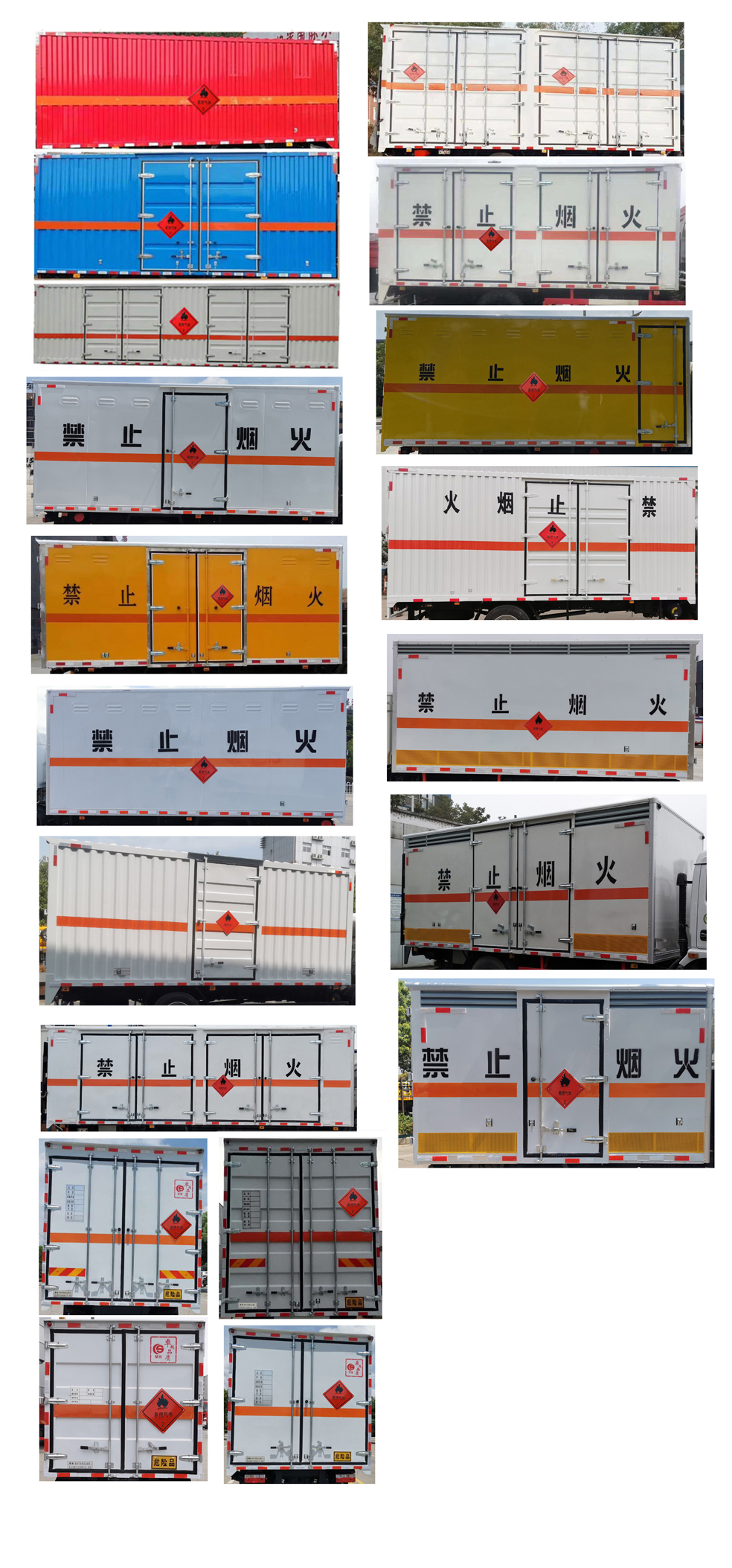 | 配置 | 1、該車適用于運(yùn)輸危險(xiǎn)品。廂體頂部封閉,不可開啟。類項(xiàng)號:2.1,2.2。2、側(cè),后防護(hù)材料均為Q235,連接方式:螺栓連接;后防護(hù)截面尺寸φ110mm,下邊緣離地高380mm。選裝后部無尾板,選裝無尾板時(shí)后防護(hù)材料為Q235,焊接連接,截面尺寸(mm)100×50,下邊緣離地高380mm。3、廂體側(cè)面選裝開門型式及位置,選裝不帶側(cè)開門,選裝瓦楞板結(jié)構(gòu);廂體側(cè)面板選裝開百葉窗。隨底盤選裝排半駕駛室;僅選用排氣管前置、限速裝置(限速80km/h)、前輪盤式制動(dòng)及子午線輪胎的底盤;安裝帶有衛(wèi)星定位功能的行駛記錄儀;ABS型號/生產(chǎn)廠家:ABS-E/威伯科汽車**系統(tǒng)(**)有限公司,CM4XL-4S/4M/廣州瑞立科密汽車電子股份有限公司。采用的發(fā)動(dòng)機(jī)與油耗值(L/100Km)對應(yīng)關(guān)系為: F3.8NSB6156/17.09,CY4SK261/18.07。液壓升降尾板收起狀態(tài)水平長度為300mm,尾板質(zhì)量為450kg。該車型可選裝ETC車載裝置;轉(zhuǎn)向輪安裝爆胎應(yīng)急防護(hù)裝置。 | ||