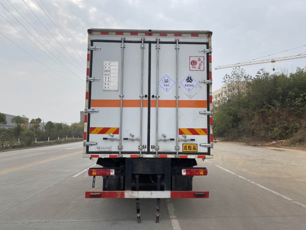| 備注 | 該車為危險品運輸車,隨底盤選裝駕駛室,選裝后視鏡,選裝側開門型式及位置,選裝不開側門,選裝不同箱體外觀,選裝后部樣式,選裝后部尾燈架樣式,選裝后處理隔熱罩,安裝限速裝置,限速80km/h,車廂頂部封閉且不可開啟;運輸獨立容器(瓶)包裝的貨物 |