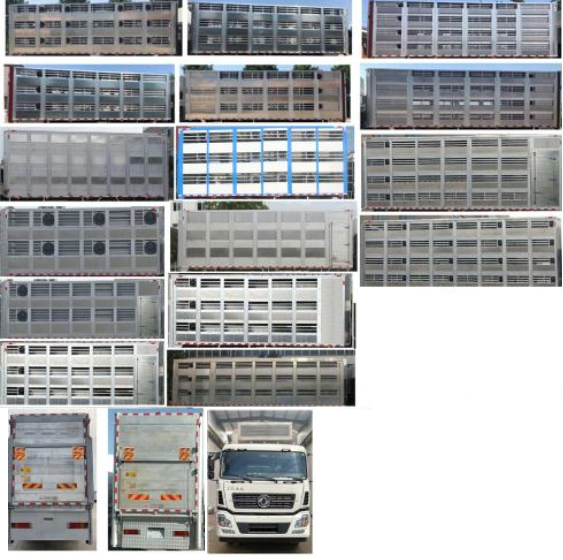 配置  該車專用裝置為箱體,主要用于畜禽運輸。車廂底板**頂部高度2560mm。尾板收起狀態(tài)水平長度為250mm,尾板質(zhì)量為450kg。側(cè)防護(hù)材料為鋁合金,螺栓連接,后防護(hù)材料為Q235,螺栓連接,斷面尺寸(mm):120×100,下緣離地高500mm。安裝有具有衛(wèi)星定位功能的行駛記錄儀。隨底盤選裝駕駛室,選裝制冷機(jī),選裝箱體前部不帶設(shè)備艙樣式,選裝多層及多隔艙樣式,選裝不同外觀。ABS系統(tǒng)**器型號/生產(chǎn)企業(yè):ABS 8/東科克諾爾商用車制動系統(tǒng)(十堰)有限公司,ABS-E 4S/4M/威伯科汽車**系統(tǒng)(**)有限公司。發(fā)動機(jī)/油耗值(L/100km)對應(yīng)關(guān)系為:DDi11E465-60/37.2,DDi11E385-60/37.2,DDi11E430-60/37.2。選裝ETC。