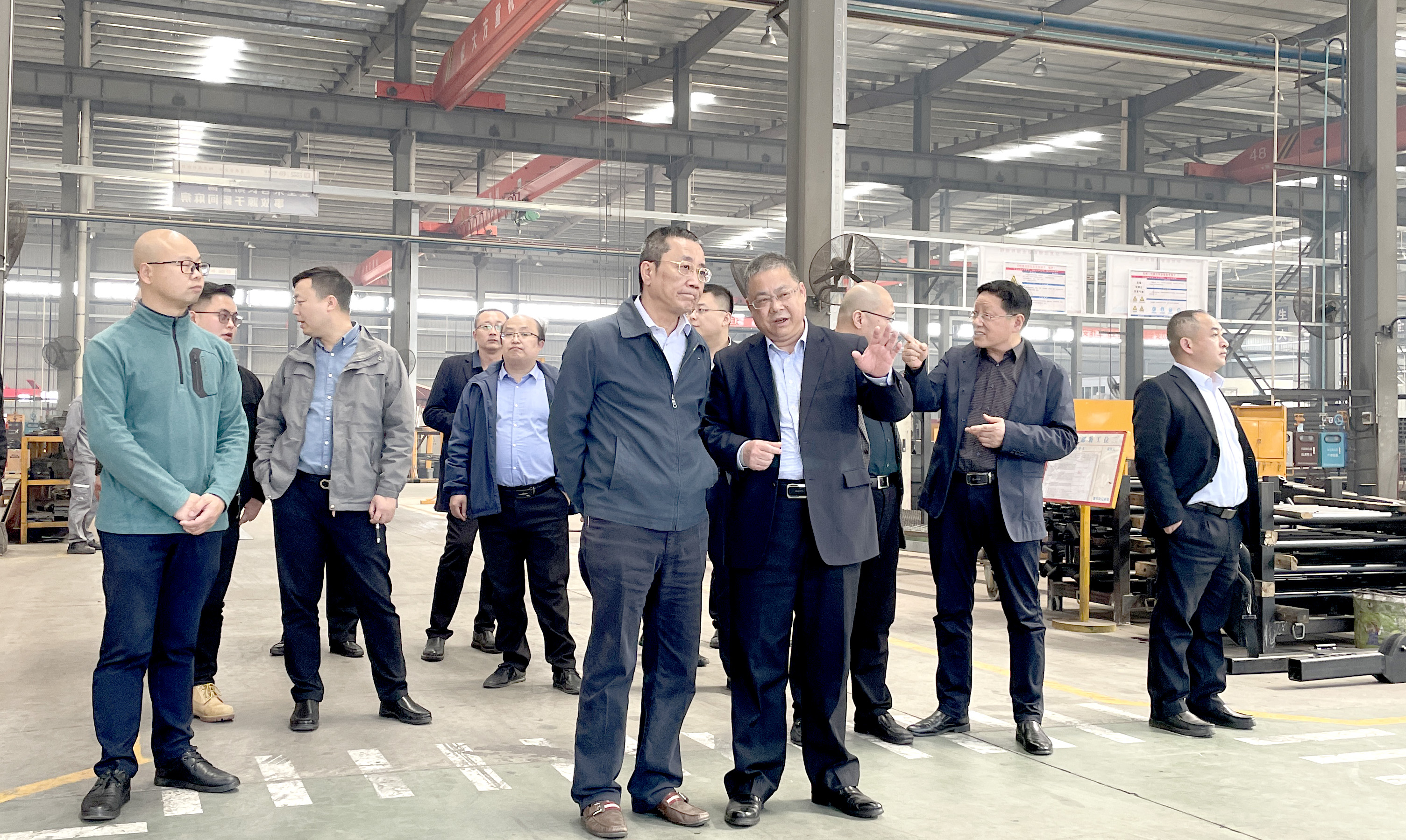 總裁王小康帶領(lǐng)蔡總等一行領(lǐng)導(dǎo)參觀了公司罐式車、自卸車、備料中心、消防車、環(huán)衛(wèi)車、清障車生產(chǎn)車間,隨后在會議室對公司發(fā)展歷程、“6+X”產(chǎn)品戰(zhàn)略、十四五發(fā)展規(guī)劃作了詳細(xì)介紹。中國重汽蔡總對楚勝公司的發(fā)展方向和市場定位表示高度贊賞,并向參會人員重點介紹了重汽汕德卡、豪沃、豪曼、成都王牌產(chǎn)品及市場情況,雙方就業(yè)務(wù)合作進(jìn)行了交流溝通。