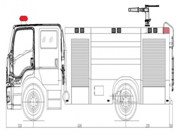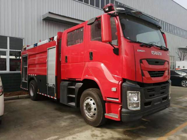 7噸消防車采用慶鈴汽車股份有限公司QL1180EQFRY 型二類汽車底盤,改制雙排駕駛室,乘員2+3人,該車駕乘舒適輕便。上裝采用內(nèi)藏式水罐,整車載液量水為4650kg,泡沫為1950kg。器材箱采用高質(zhì)量鋁合金卷簾門。底盤取力,發(fā)動(dòng)機(jī)型號(hào)為6HK1-TCG61,最大功率177kW,通過(guò)萬(wàn)向聯(lián)軸器驅(qū)動(dòng)安裝在汽車尾部泵房里的上海雄真CB10/60型常壓消防泵,可在1.0MPa下穩(wěn)定輸出60L/s的流量;車頂安裝成都威斯特消防器材有限責(zé)任公司生產(chǎn)的PL8/48型消防炮(泡沫消防車),流量48L/s,對(duì)應(yīng)壓力0.8MPa,最大承壓1.3MPa,射程 水≥70m 泡沫≥60m,可360°旋轉(zhuǎn)。同時(shí)該車具有比功率大、綜合性能強(qiáng)、操控集中簡(jiǎn)便等特點(diǎn)。